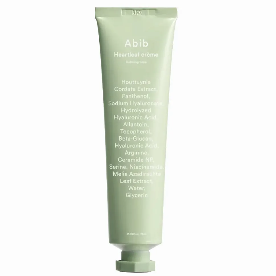 Heartleaf Crème Calming Tube on Abib:in palkitun Heartleaf Calming -linjan hellävarainen tehorauhoittava ja ihon öljyisyyttä kontrolloiva kosteusvoide etenkin herkälle, rasvoittuvalle, akneen taipuvalle ja sekaiholle, joka kärsii usein ihoärsytyksestä ja tulehduksista.