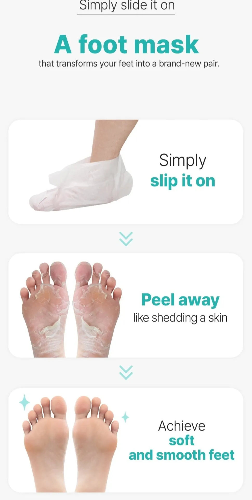 Naamiota käytetään kuten sukkia ja se huolehtii jalkojen kuorinnasta puolestasi ihoa ärsyttämättä.