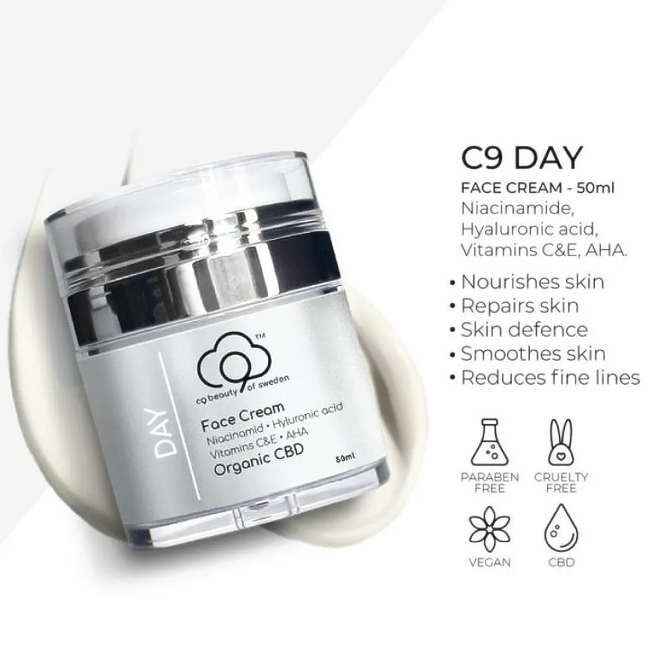 C9 Day – Face Cream on ihoa ravitseva, vahvistava ja juonteita hoitava kosteusvoide kaikille ihotyypeille, etenkin kuivalle ja ikääntyvälle iholle – tämä ihoystävällinen kasvovoide auttaa tasapainottamaan ihoa luoden siitä täyteläisemmän, kuulaamman ja elinvoimaisemman!