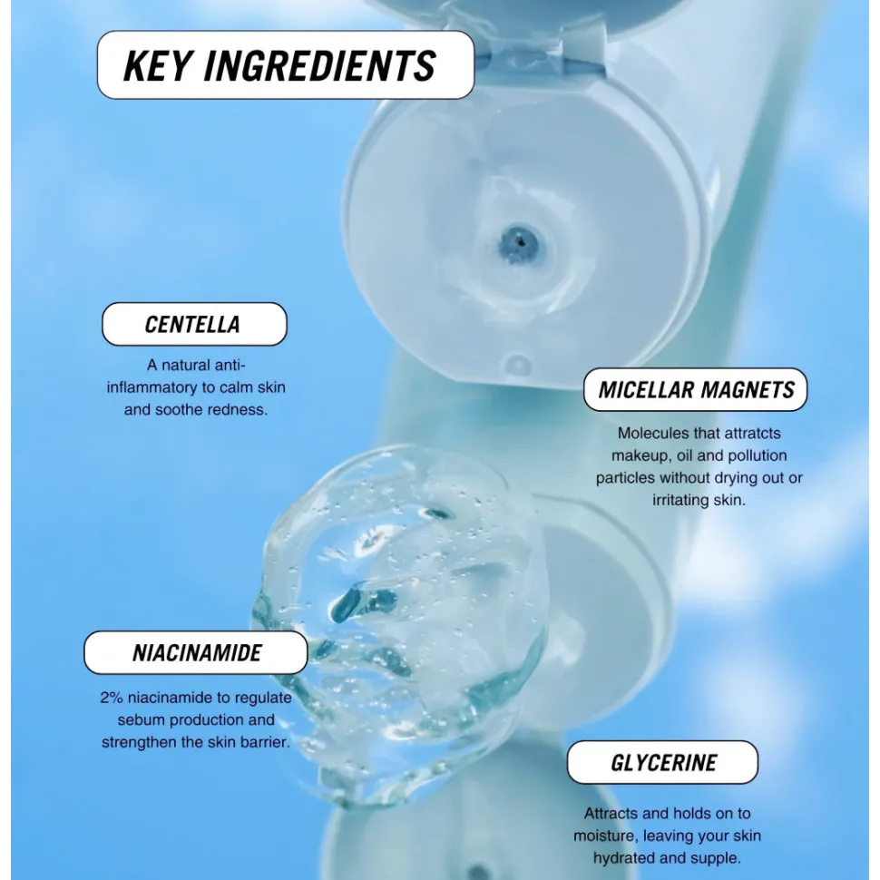 Common Clouds Cloud Wash Everyday Gel Cleanser on hellävarainen, ihoa rauhoittava ja vahvistava puhdistusgeeli kaikille ihotyypeille, joka puhdistaa tehokkaasti myös meikin ja aurinkovoiteen miselli-teknologiaa hyödyntävien ainesosien avulla.