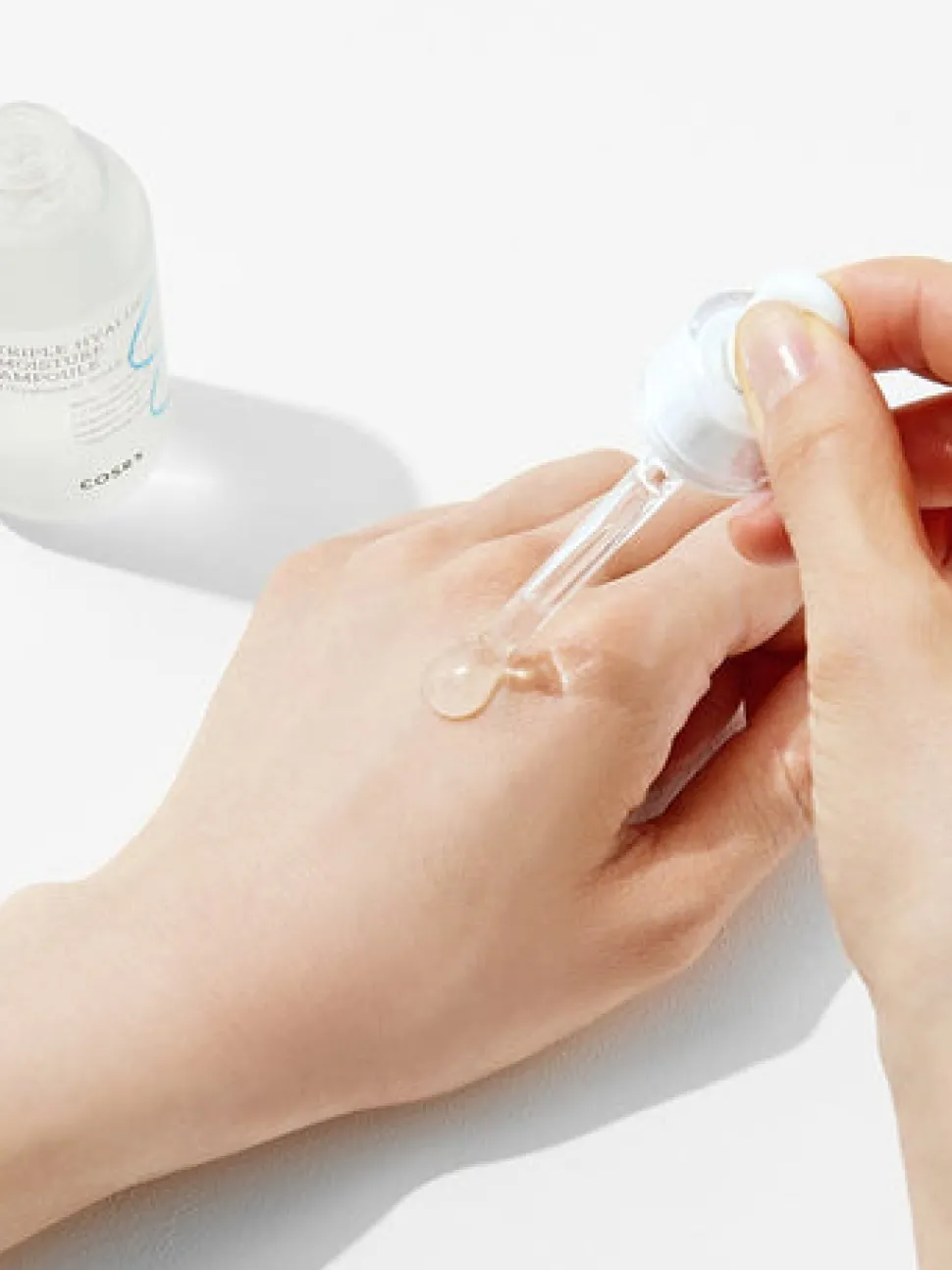 COSRX Hydrium Triple Hyaluronic Moisture Ampoule on hyaluronihappoa ja B5-vitamiinia eli panthenolia sisältävä kosteuttava seerumi. Seerumin sisältämä isomolekyylinen hyaluronihappo luo iholle suojamuurin estäen kosteuden haihtumista, ja pitäen ihon kosteutettuna. Pienen molekyylikoon hyaluronihappo puolestaan imeytyy ihoon tehokkaasti kosteuttaen ja tehden ihosta kimmoisan. Hyaluronihappo tekee ihosta täydellisen kosteutetun, kimmoisan ja heleän.