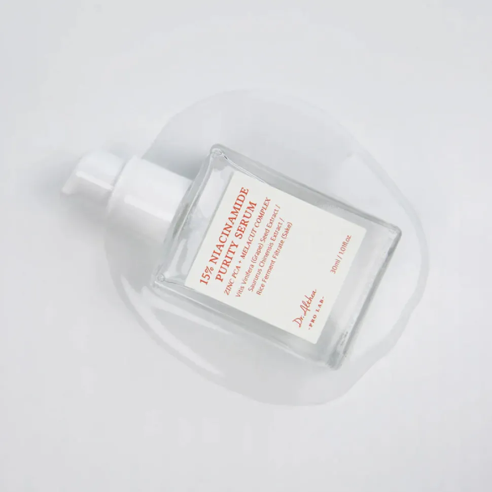 Dr. Althea 15% Niacinamide Purity seerumi sisältää 15% niasiiniamidia, joka kirkastaa ja tasoittaa ihonsävyä ja tasapainottaa ylimääräisen talin tuotantoa. Sen lisäksi se ehkäisee uusien epäpuhtauksien syntymistä ja häivyttää suuria ihohuokosia.