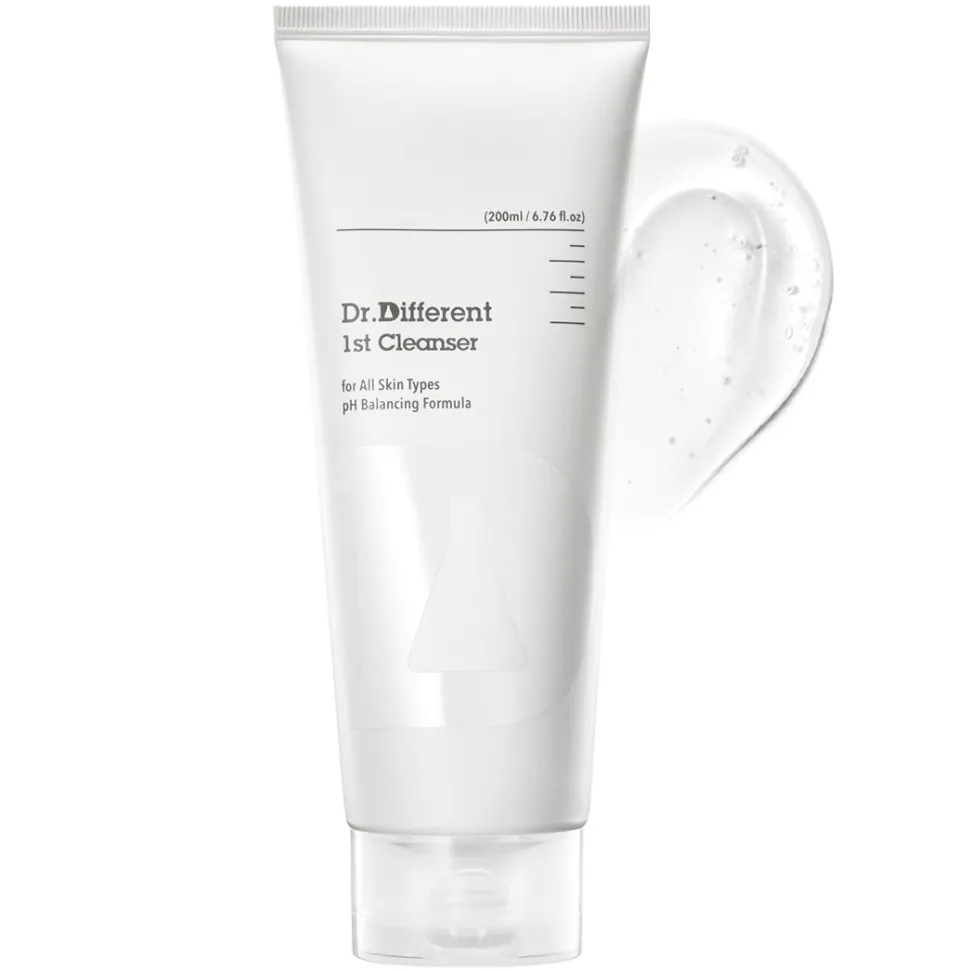 Dr.Different 1st Cleanser on mieto ja hypoallergeeninen kasvojen puhdistusgeeli, joka puhdistaa hellävaraisesti iholta lian, kevyen pohjameikin ja aurinkovoiteen jäämät – ilman pelkoa ihoärsytyksestä tai kiristävästä tunteesta puhdistuksen jälkeen. Soveltuu kaikille ihotyypeille, myös erittäin herkälle iholle.