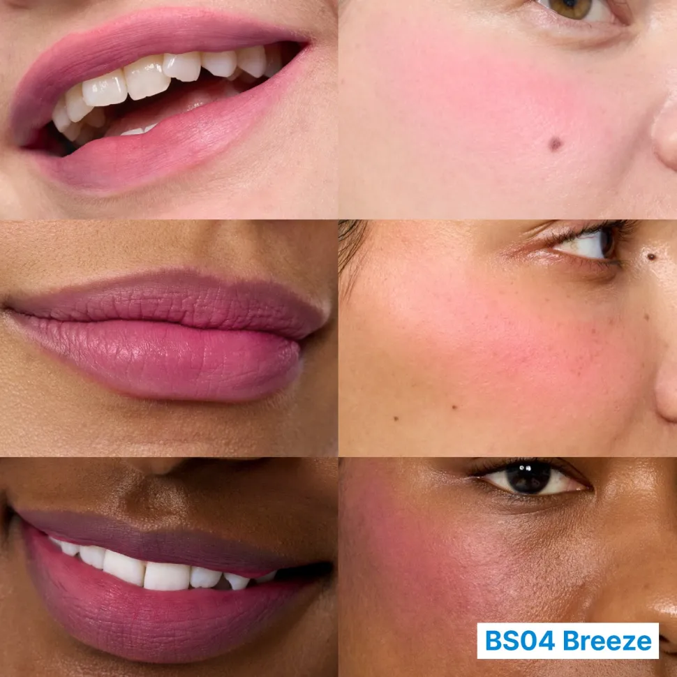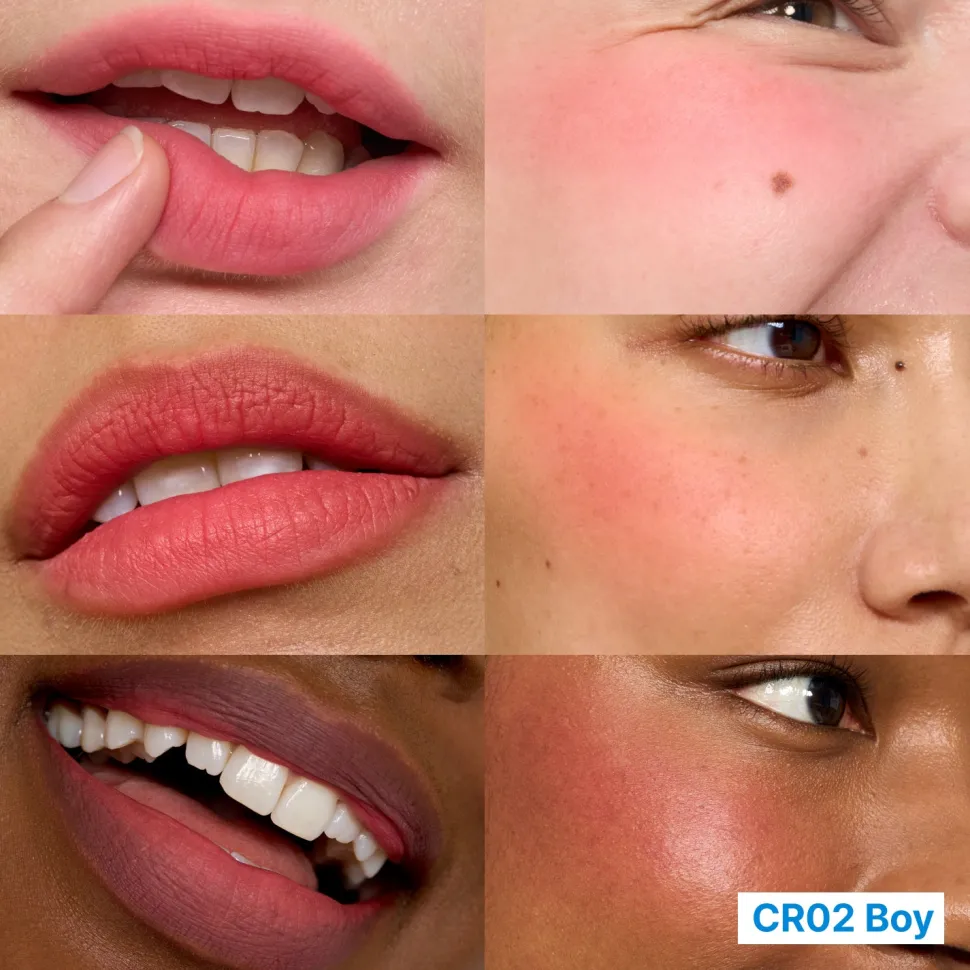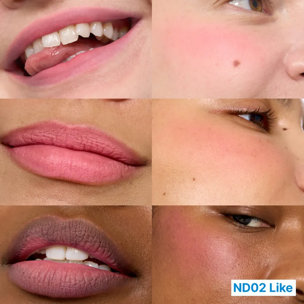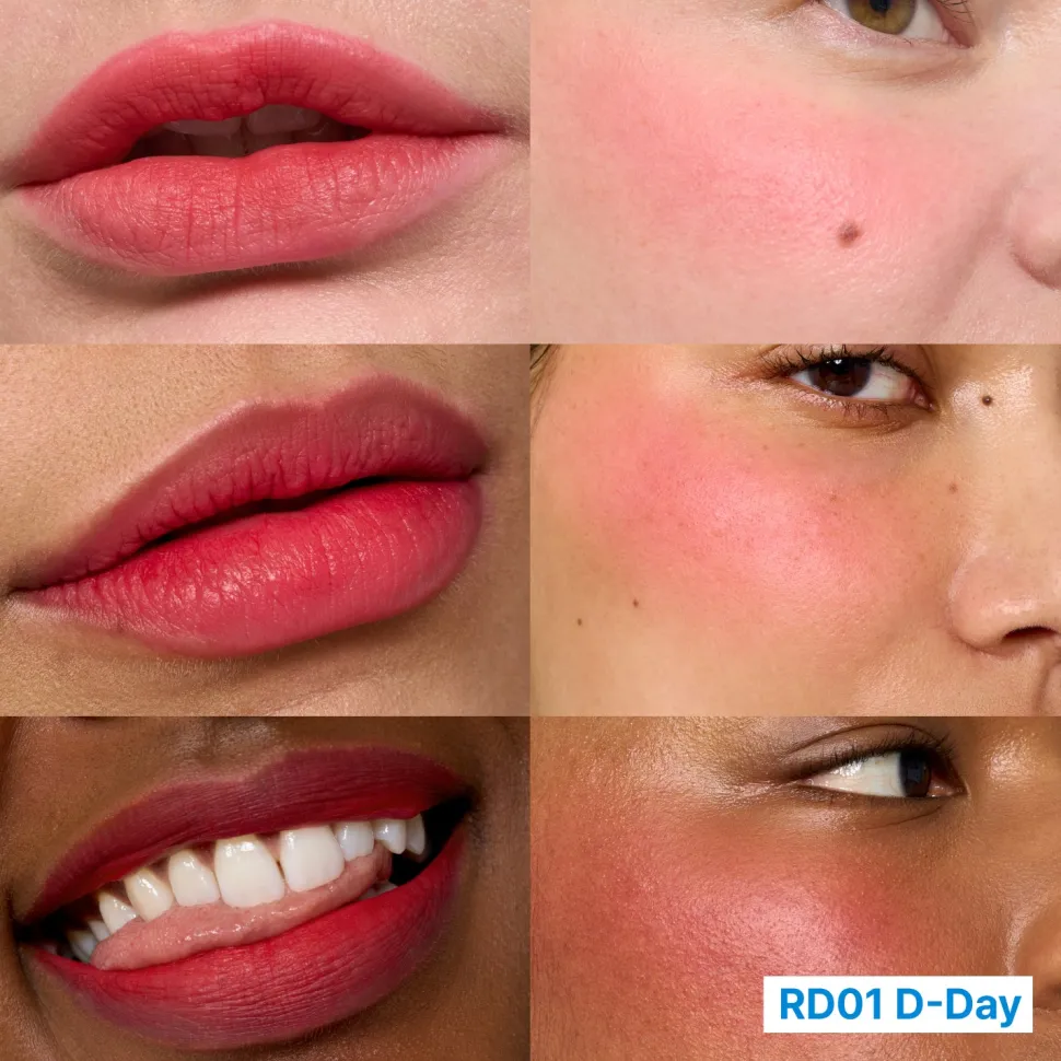 Vinkki: yhtenäisen lopputuloksen saavuttamiseksi levitä samaa sävyä huulille, poskille ja luomille!