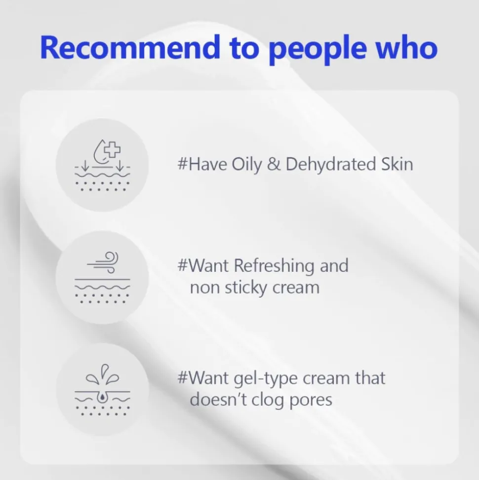Isntree Hyaluronic Acid Aqua Gel Cream on kevyt ja raikas geelimäinen kosteusvoide, joka täyttää ihon vesikosteudella. Soveltuu mainiosti kaikille ihotyypeille.