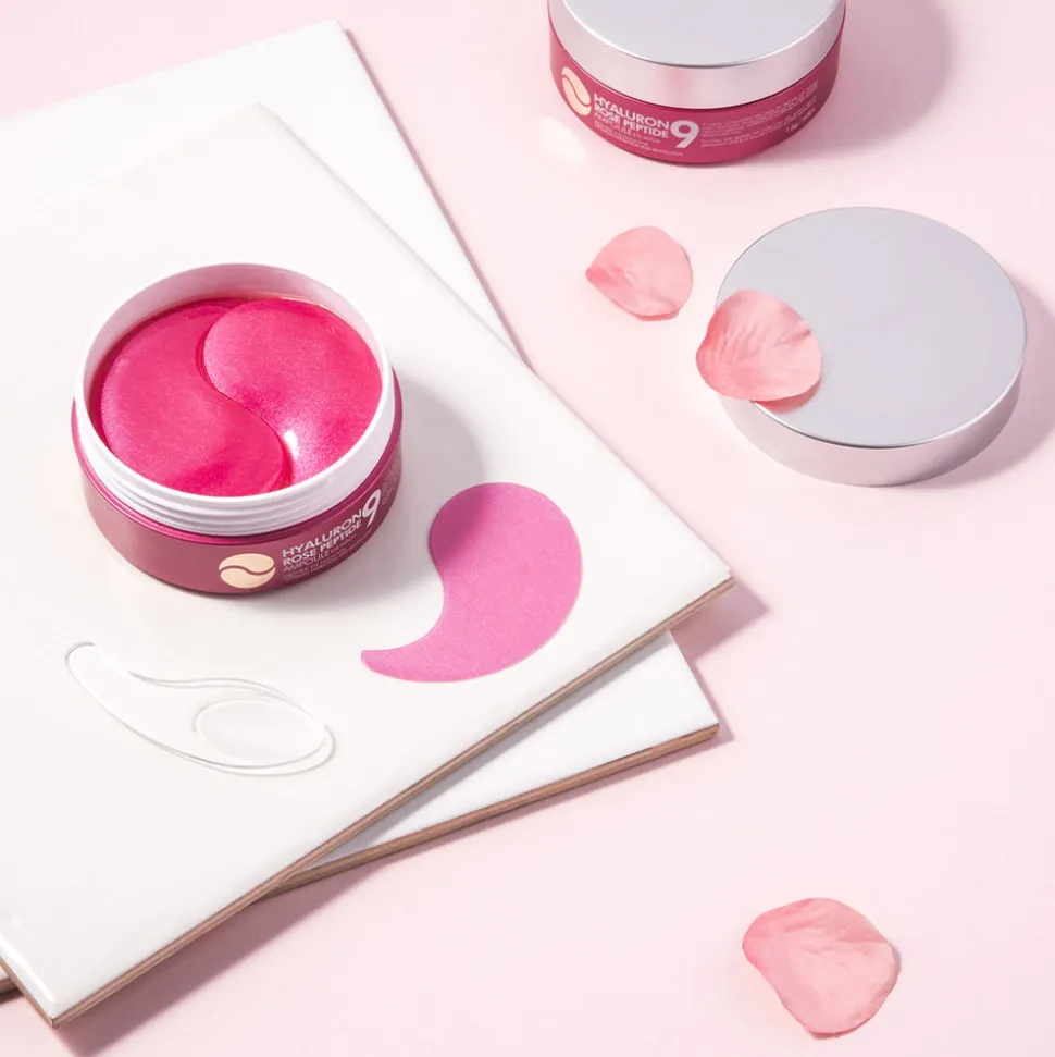 Hyaluron Rose Peptide 9 Ampoule Patch on ruusu-uutetta sisältävä silmänympäryslappu, joka tehokosteuttaa elotonta ja kuivaa ihoa.