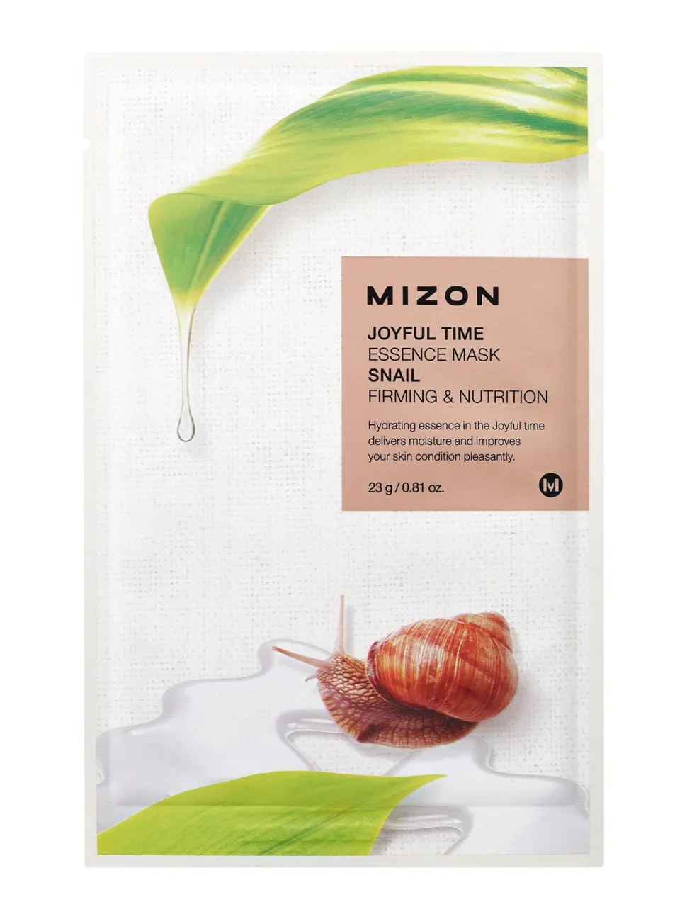 Mizon Joyful Time Essence Mask Snail rauhoittaa, puhdistaa ja hoitaa ihoa. Etanaseerumi auttaa häivyttämään pigmenttimuutoksia, ehkäisemään ikääntymisen merkkejä ja tasoittaa ihon sävyä.