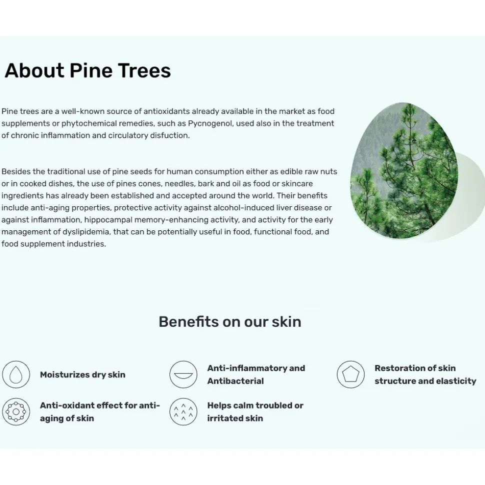 Kasvovesilaput sisältävät patentoitua PINE CICA ACTIVER™ -yhdistettä; antibakteerinen männynlehtiuute, anti-inflammatoorinen viisinkertainen rohtosammakonputkiuute ja kolme eri molekyylipainon hyaluronihappoa auttavat luomaan ärtyneestä ihosta tyynen, heleämmän ja tasapainoisen kosteutetun.