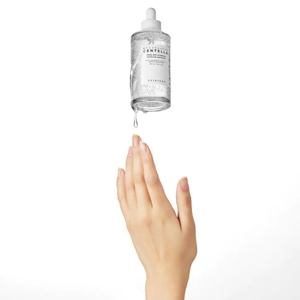 SKIN1004 Centella Tone Brightening Capsule Ampoule on kevyt helposti imeytyvä ja kosteuttava ampulli, joka kirkastaa ja tasoittaa ihon sävyä.