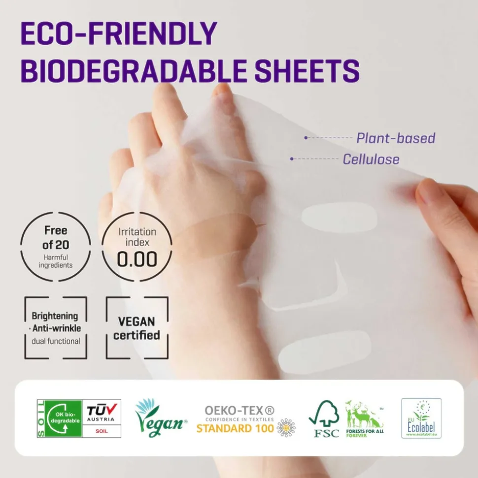 Kangasnaamiot sisältävät ihon uusiutumisprosessia edistävää bakuchiolia, retinolia, retinalia ja adenosiinia, kirkastavaa niasiiniamidia sekä kahdeksaa eri molekyylipainon hyaluronihappoa, jotka yhdessä auttavat edistämään ihon pehmeyttä ja joustavuutta, kirkastamaan ihon tekstuuria ja yleisilmettä sekä tarjoamaan pitkäkestoista kosteutusta, taistellen samalla ennenaikaisia ikääntymisen merkkejä vastaan.