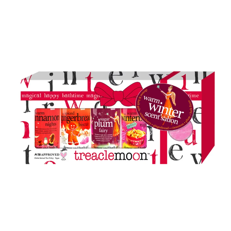 Lahjapakkaus sisältää Treaclemoonin neljä myydyintä limited edition -suihkugeeliä talvisessa ja jouluisessa tuoksumaailmassa.