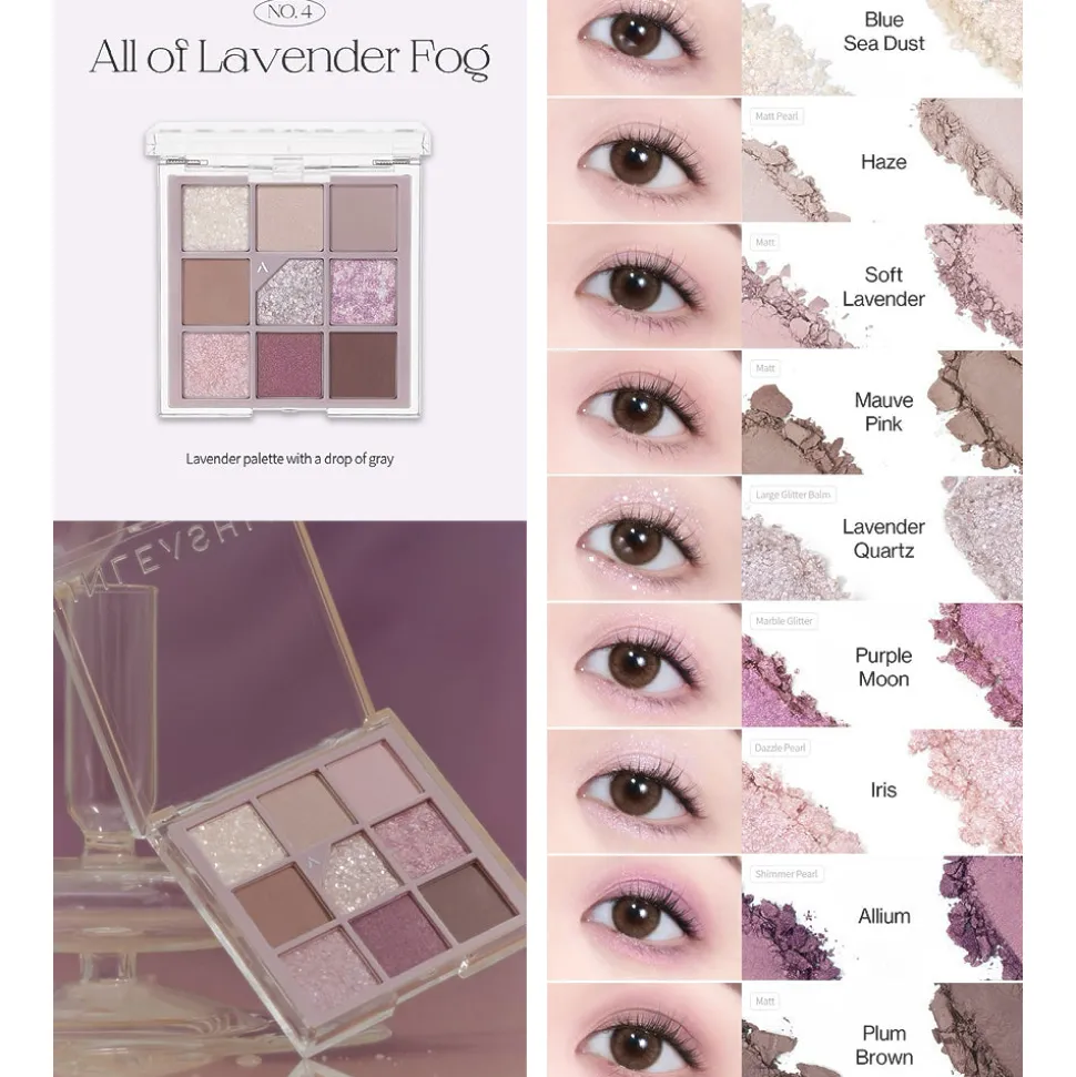 | Color | N°1 All of Glitter, N°2 All of Brown, N°3 All of Coralpink, N°4 All of Lavender Fog, N°5 All of Dusty Rose, N°6 All of Citrus, N°7 All of Peach Ade |