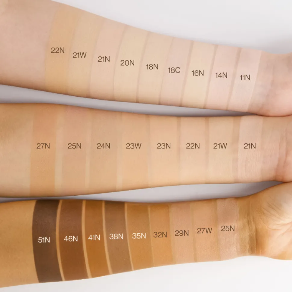 Meikkivoiteen koostumus on vegaaninen, hajusteeton, hengittävän kevyt ja tasaisesti levittyvä, eikä se tunnu tai näytä iholla kuivalta, rasvaiselta tai tukkoiselta – ei siis huolta epätasaisesta tai kakkumaisesta ihon pinnasta, lopputulos on kuin oman ihosi paras versio.