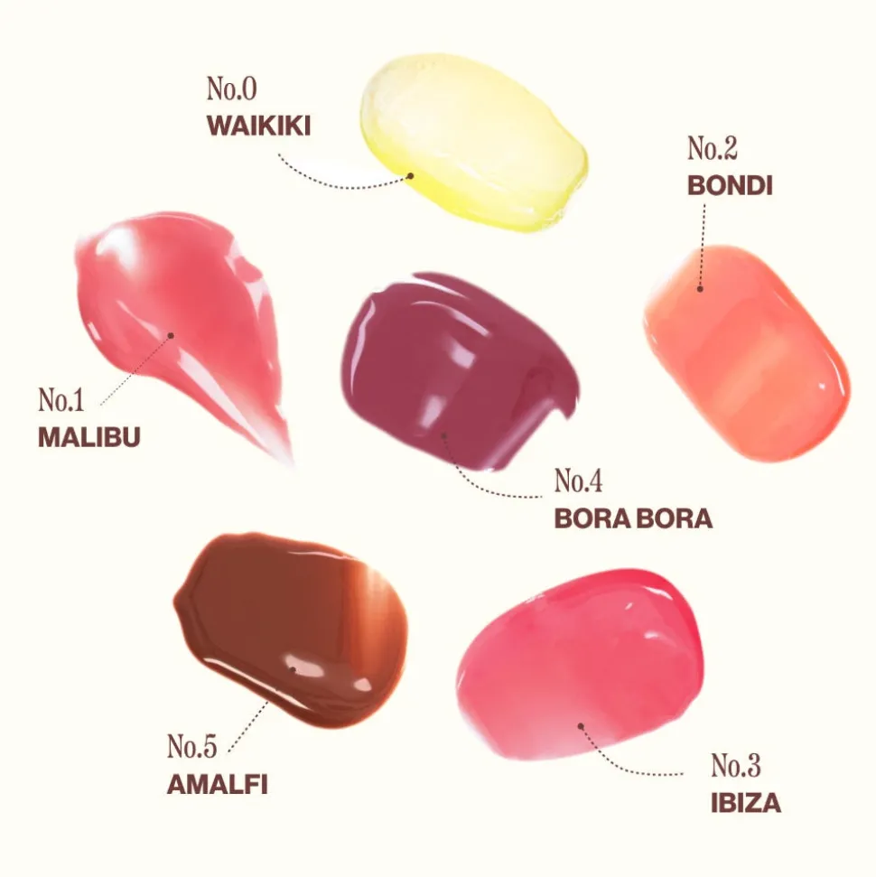 No. 0 Waikiki : Kirkas huulikiilto, joka hohtaa kuin auringonsäteet Waikikin rantahiekalla. C-vitamiinilla rikastettu sävy tuo huulille luonnollista kiiltoa.