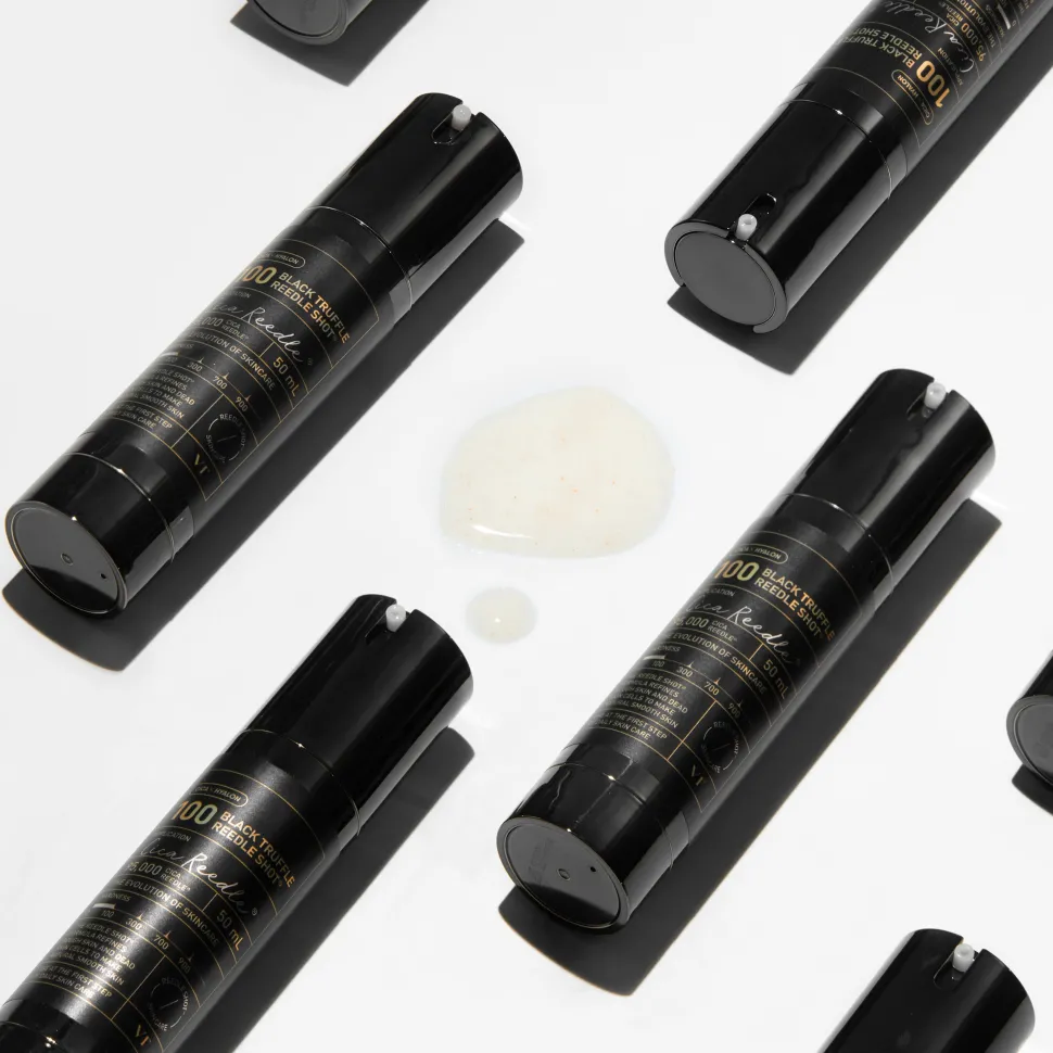 Black Truffle Reedle Shot 100 on ylellinen anti-age -hoitoneste, joka hyödyntää italialaista mustatryffeliuutetta ja puhdasta 24K kultaa tehokkaaseen ihonhoitoon. Se tasoittaa ja silottaa ihon pintaa, vähentää aknearpia ja pigmenttimuutoksia sekä tukee ihon uusiutumista lasimaisen kirkkaan lopputuloksen saavuttamiseksi.