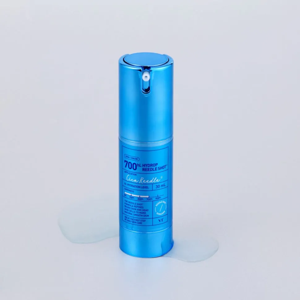 VT Cosmetics Hydrop Reedle Shot 700hL on syväkosteuttava hoitoneste, joka edistää aktiivisten ainesosien imeytymistä ihoon parantaen ihon tekstuuria, elastisuutta ja kuulautta mikroneulauksen tavoin – ilman neuloja!