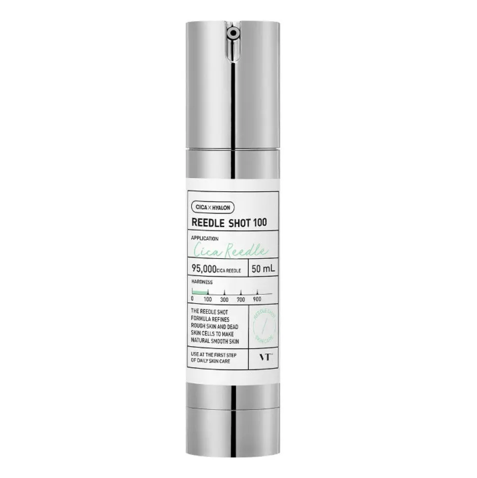 VT Cosmetics Reedle Shot 100 on innovatiivinen hoitoneste, joka auttaa aktiivisten ainesosien imeytymistä ihoon edistäen ihon tekstuuria, täyteläisyyttä ja kuulautta mikroneulauksen tavoin – ilman neuloja!