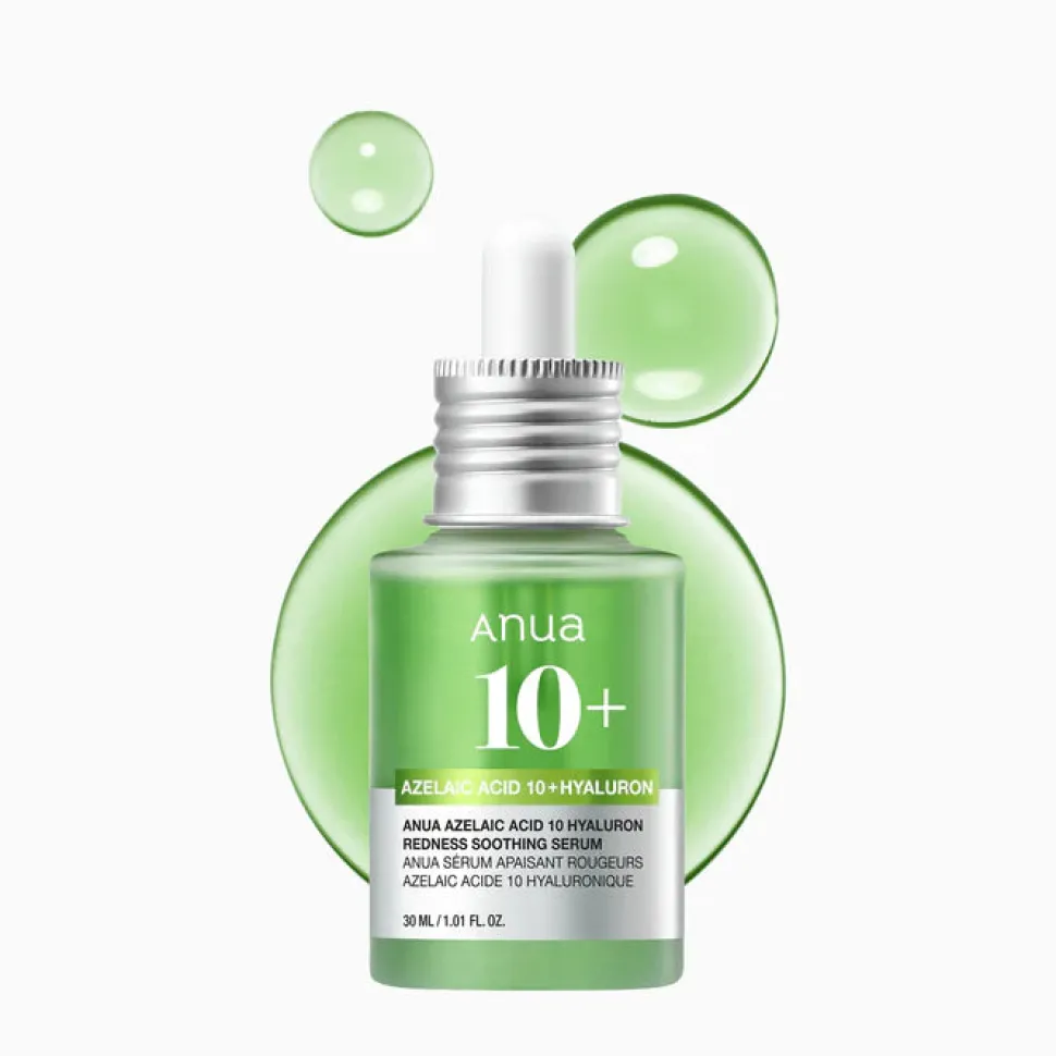 Anua Azelaic Acid 10 Hyaluron Redness Soothing Serum on kevyt ja rauhoittava seerumi, joka on suunniteltu erityisesti herkän, epäpuhtauksiin taipuvaisen ja ruusufinniin taipuvaisen ihon tarpeisiin.