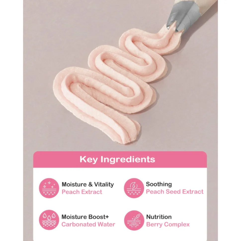 Puhdistusaine on rikastettu ravitsevilla marjauutteilla, kuten 14% persikka- ja mansikkauutteilla, sekä antioksidanttisella niasiiniamidilla, jotka yhdessä auttavat luomaan ihosta ihanan heleän, raikkaan ja kosteutetun niin puhdistuksen yhteydessä kuin sen jälkeen. Tuotteessa on käytetty 95% hiilihapotettua vettä edistämään kosteuttavien ainesosien imeytymistä ihoon.