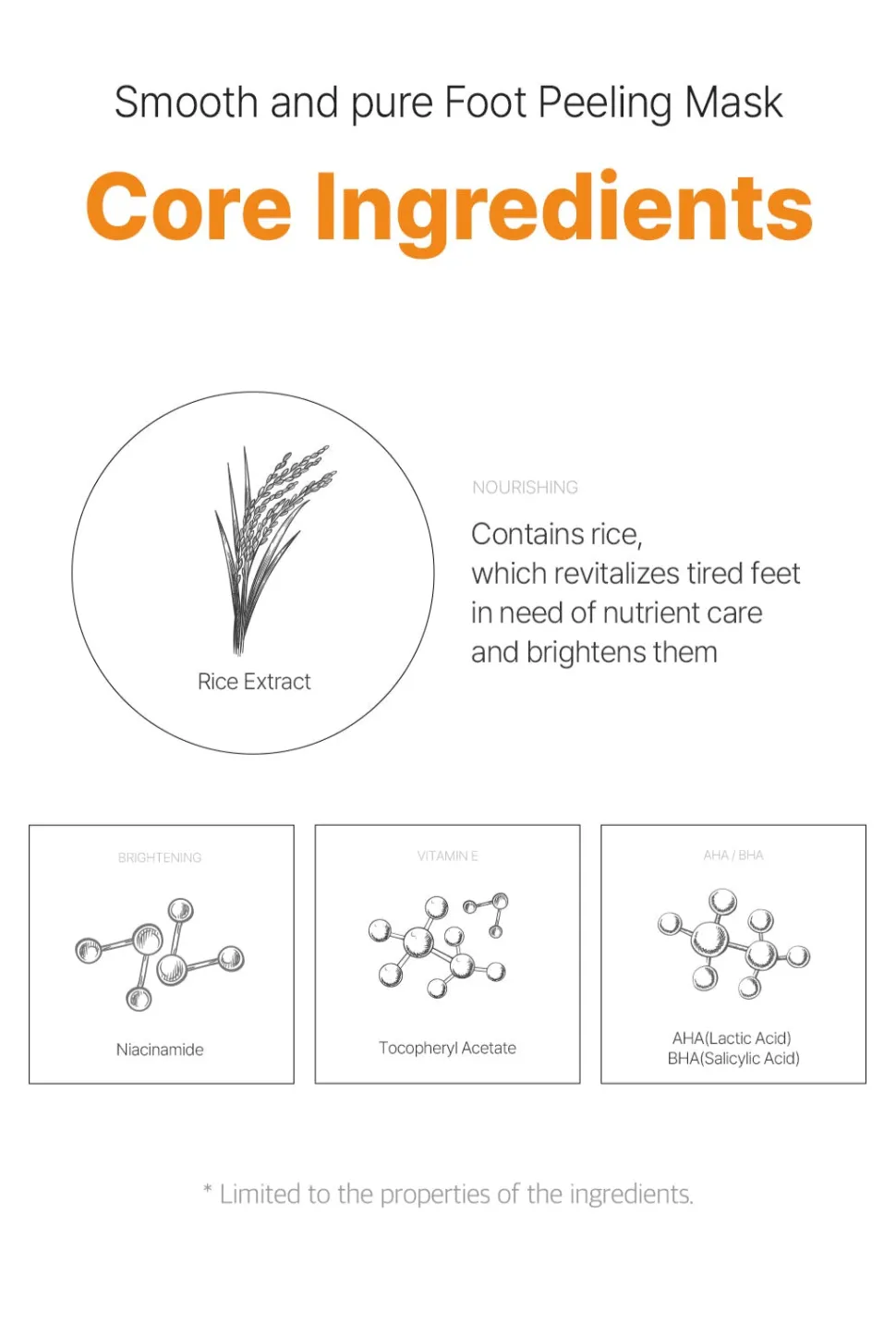 Ariul Smooth & Pure Foot Peeling Mask Nourishing on jalkojen kuorintanaamio, joka poistaa kuollutta ihosolukkoa ja tekee jaloista ihanan pehmeät. Kuorintasukat sisältävät riisiuutetta, niasiiniamidia sekä kuorivia happoja.