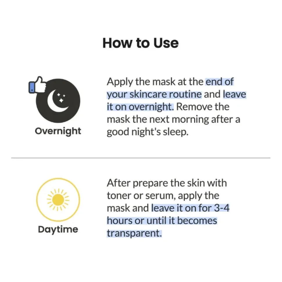 Sileästä hydrogeelistä valmistettu kangasnaamio pysyy kasvoilla läpi yön, tuntuen miellyttävältä ja ei-tahmaiselta, soveltuen mainiosti myös päiväkäyttöön.