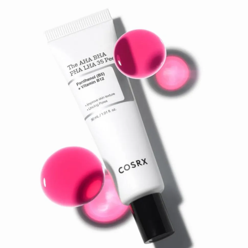 COSRX The AHA BHA PHA LHA 35 Peel on ihanteellinen tuote niille, jotka ovat käyttäneet aikaisemmin vahvempia kuorintatuotteita. Se yhdistää sekoituksen AHA-, BHA-, PHA- ja LHA-happoja tarjoten perusteellisen ja tehokkaan kuorinnan, joka kuorii kuolleita ihosoluja ja syväpuhdistaa ihohuokosia epäpuhtauksista.