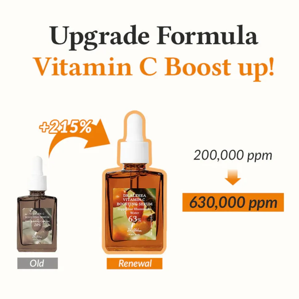 Dr. Althea Vitamin C Boosting Serum on ihoystävällinen, kosteuttava ja ihon pigmenttimuutoksia tehokkaasti kirkastava C-vitamiiniseerumi kaikille ihotyypeille, myös ikääntyvälle ja herkälle iholle.
