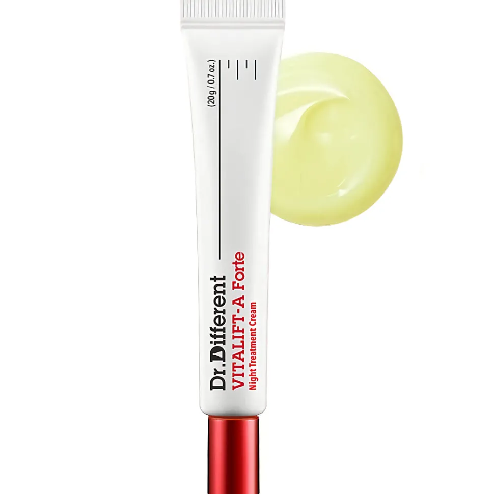 Palkittu Dr.Different VITALIFT-A Forte on ihon joustavuutta edistävä, ravitseva ja kirkastava 0.1% retinalia sisältävä yövoide kaikille ihotyypeille, etenkin ikääntyvälle iholle joka kärsii karheasta tekstuurista ja pigmenttimuutoksista. VITALIFT-A Forte -yövoide auttaa tehokkaasti häiventämään ja ennaltaehkäisemään juonteita, pehmentämään ihon tekstuuria, kirkastamaan pigmenttimuutoksita, sekä luomaan ihosta täyteläisemmän ja elinvoimaisemman.
