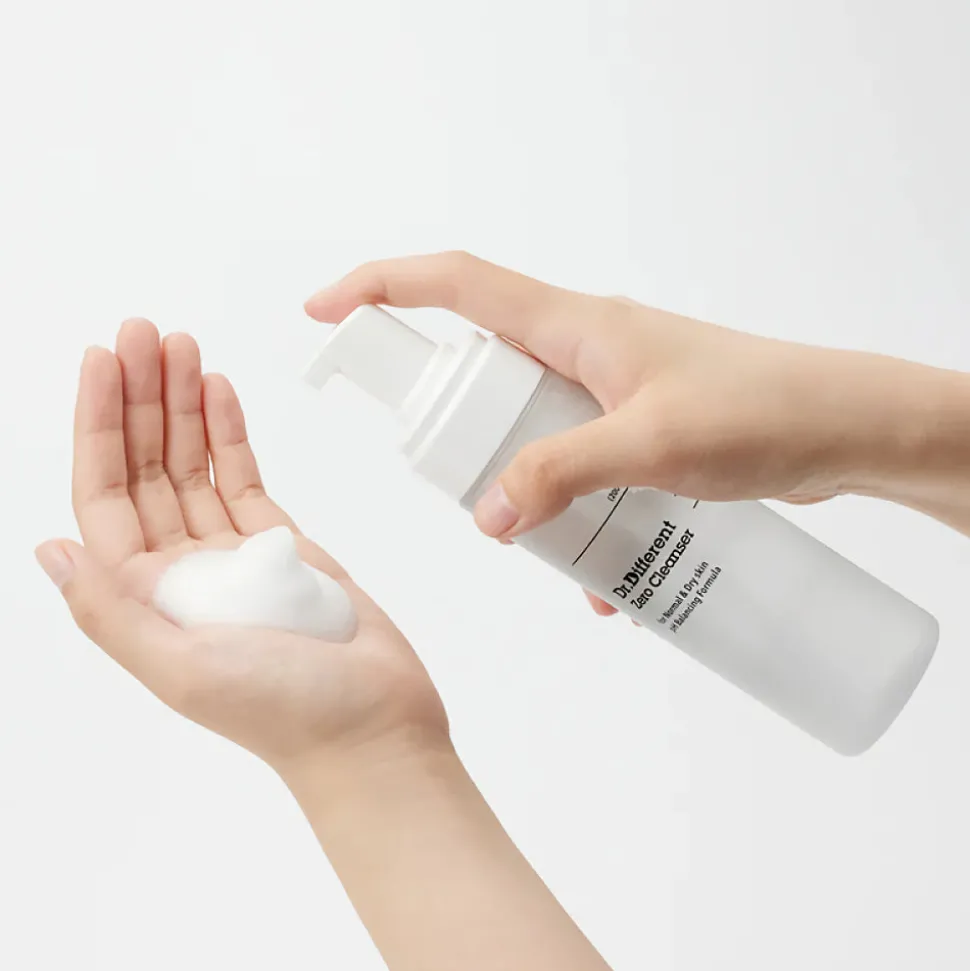 Dr.Different Zero Cleanser (Normal & Dry Skin) on mieto ja hypoallergeeninen kasvojen puhdistusvaahto, joka puhdistaa hellävaraisesti iholta lian, sekä aurinkovoiteen- ja meikin jäämät – ilman pelkoa ihoärsytyksestä tai kiristävästä tunteesta puhdistuksen jälkeen. Soveltuu kaikille ihotyypeille, etenkin herkälle-, normaalille- ja kuivalle iholle.