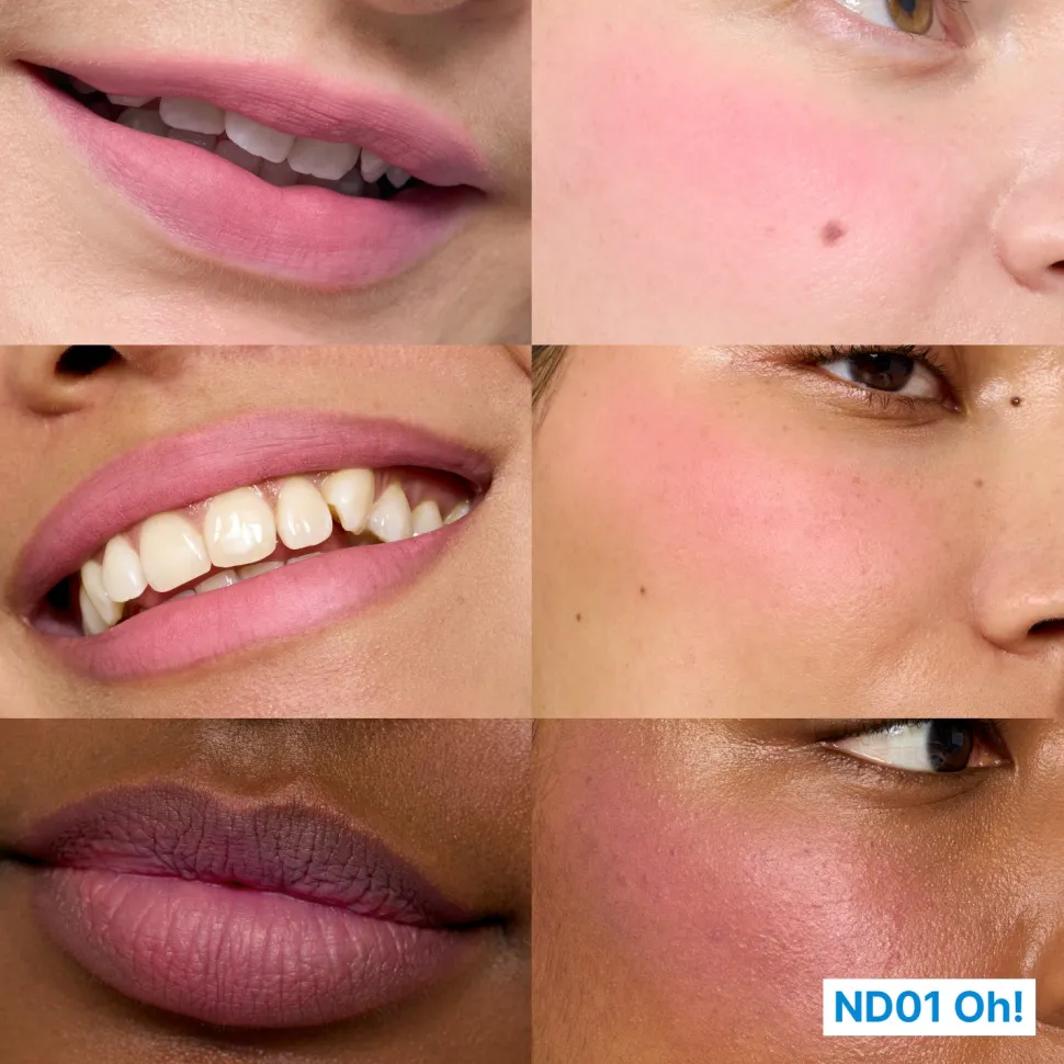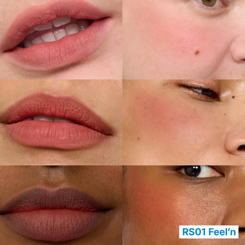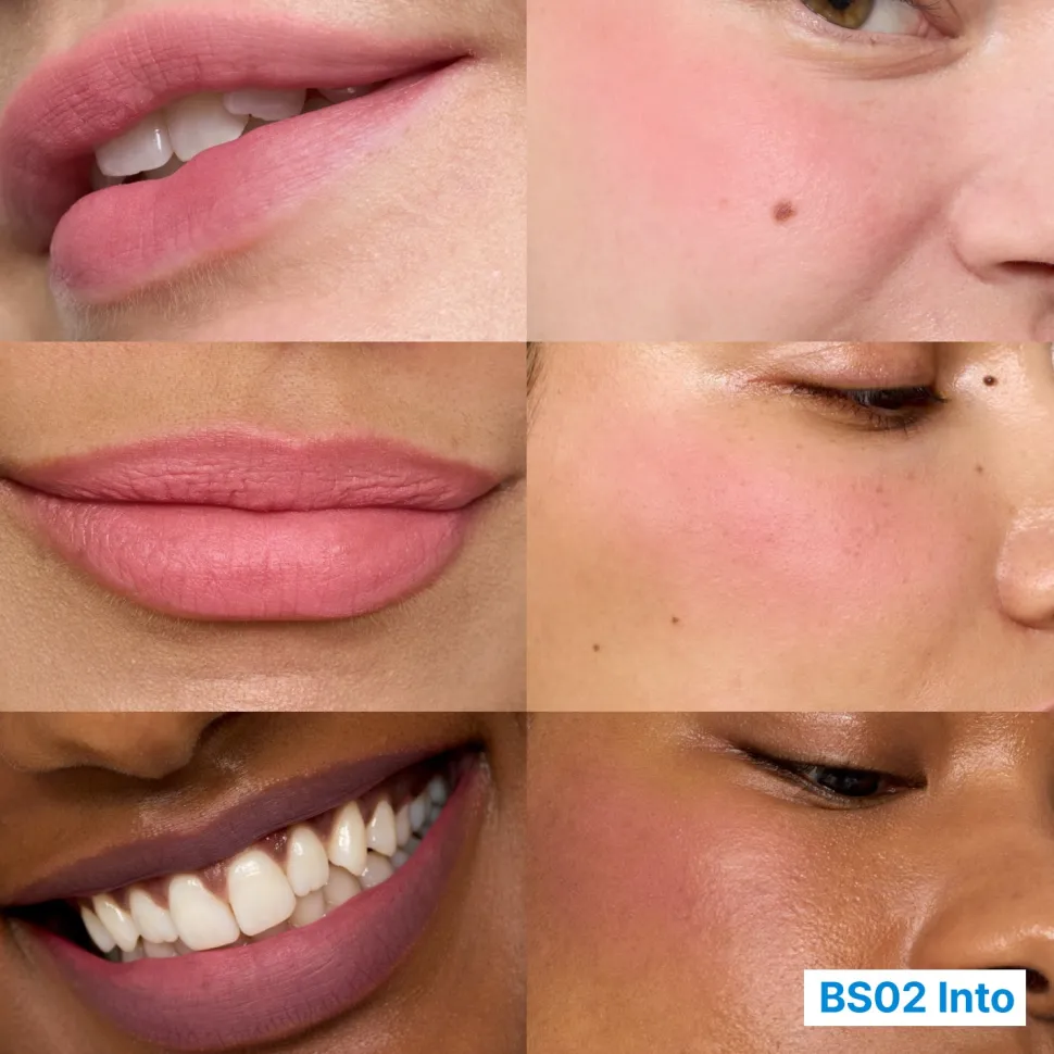 Vinkki: yhtenäisen lopputuloksen saavuttamiseksi levitä samaa sävyä huulille, poskille ja luomille!