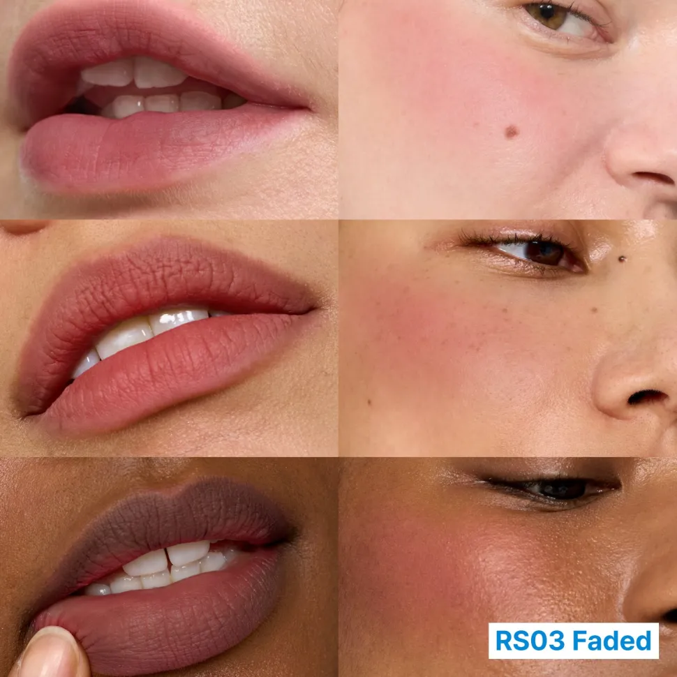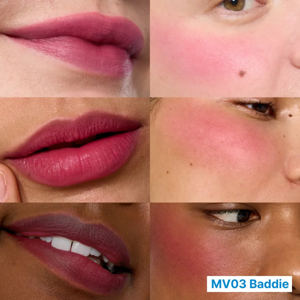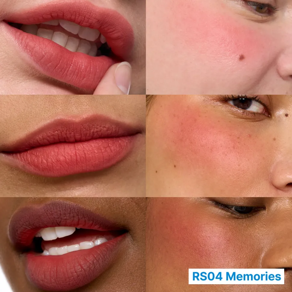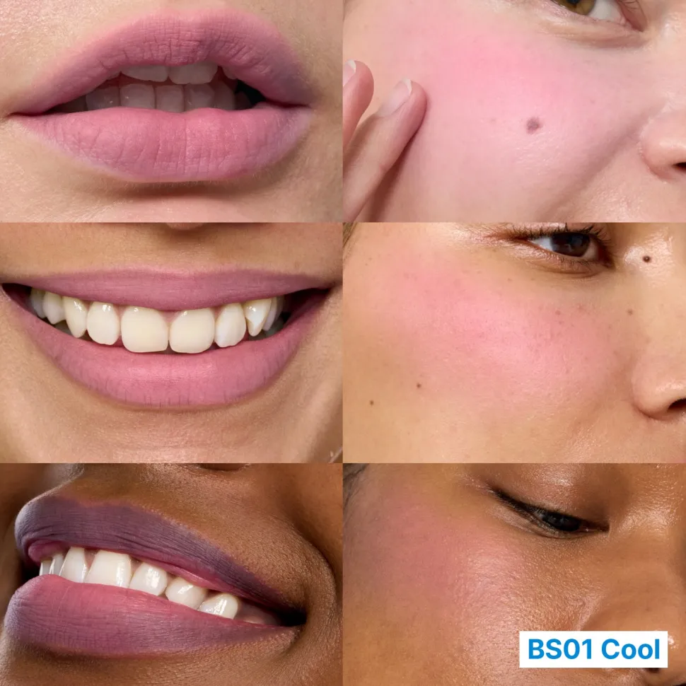 Vinkki: yhtenäisen lopputuloksen saavuttamiseksi levitä samaa sävyä huulille, poskille ja luomille!