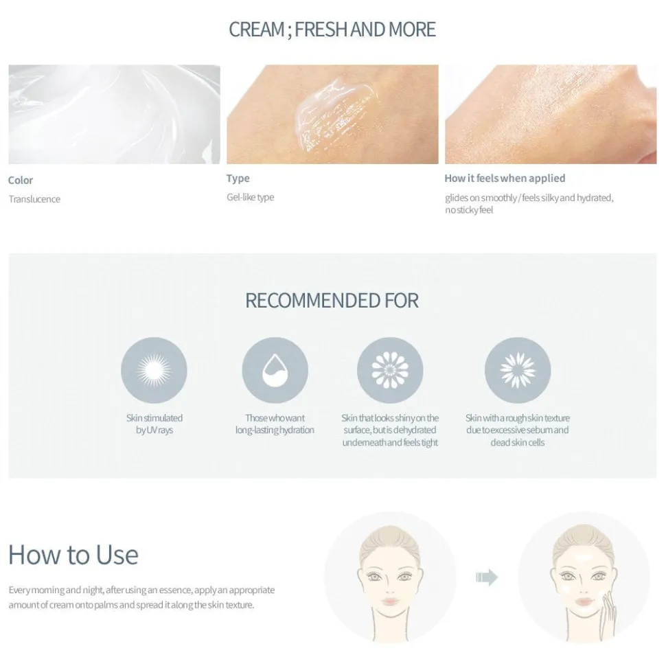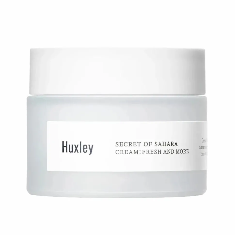 Huxley Cream; Fresh and More on runsaasti E-vitamiinia sisältävä geelivoide, joka syväkosteuttaa kosteusköyhää ihoa tukkimatta ihohuokosia. Antioksidanttisen voiteen sisältämät keramidit ravitsevat ihoa auttaen ehkäisemään kosteuden haihtumista ja ihon kuivumista. Kaktusviikunan siemenöljy, vihannesportulakkauute sekä japaninkoivun- ja jättibambun mahla kosteuttavat, rauhoittavat ja uudistavat ihoa.