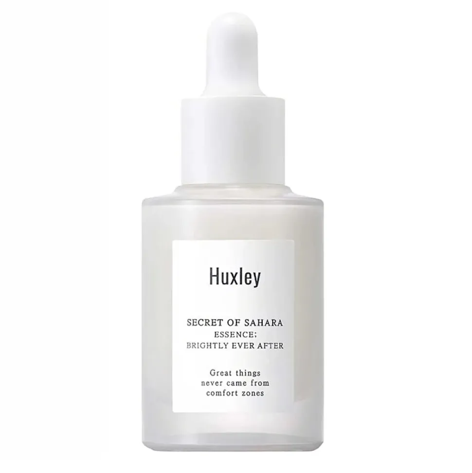 Huxley Essence; Brightly Ever After on kaikille ihotyypeille soveltuva kirkastava hoitoneste, joka auttaa häivyttämään ihon pieniä pigmenttimuutoksia, kuten hyperpigmentaatiota ja epäpuhtauksien jättämiä jälkiä. Hoitoneste sisältää ihon sävyä tasoittavien aktiiviaineiden lisäksi antioksidanttista kaktusviikunan siemenöljyä, rauhoittavaa bisabololia sekä ihoa kirkastavasta vaikutuksestaan tunnettua niasiiniamidia, jotka yhdessä auttavat heleyttämään ihoa auttaen samalla ylläpitämään sen hyvinvointia.