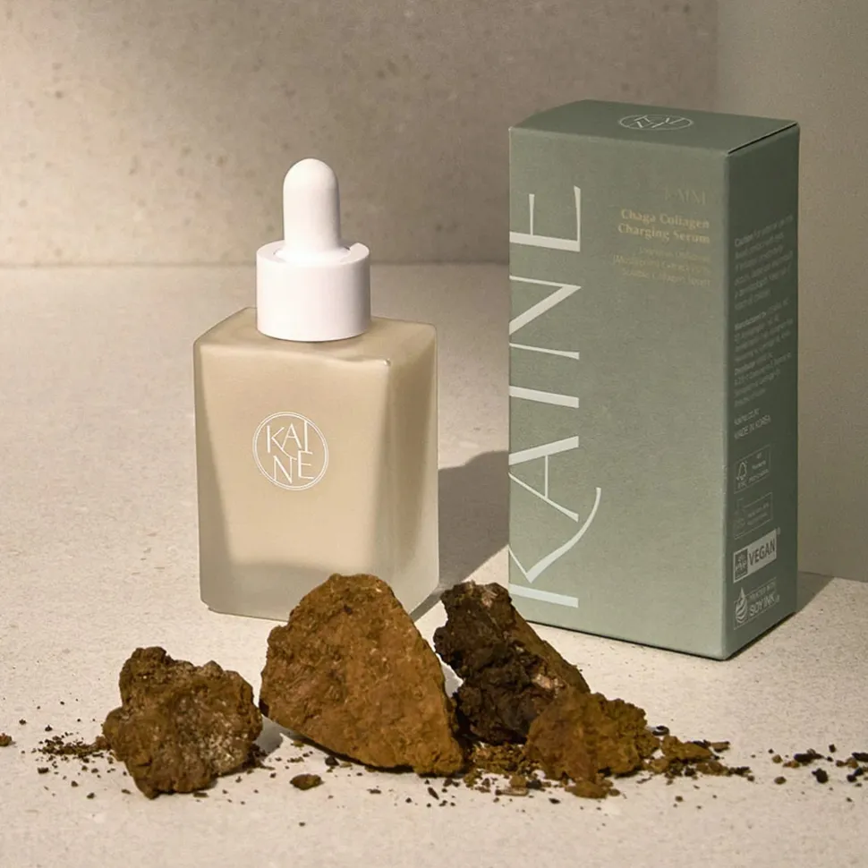 Kaine Chaga Collagen Charging Serum hoitaa väsynyttä ja veltostunutta ihoa vegaanisesti ja tehokkaiden ainesosien avulla. Seerumi sisältää 70% pakurikääpäuutetta (Chaga Mushroom), joka on täynnä antioksidantteja ja ravinteita. Pakuriuutteessa on myös mm. ihoa erittäin tehokkaasti kosteuttavaa beta-glukaania.