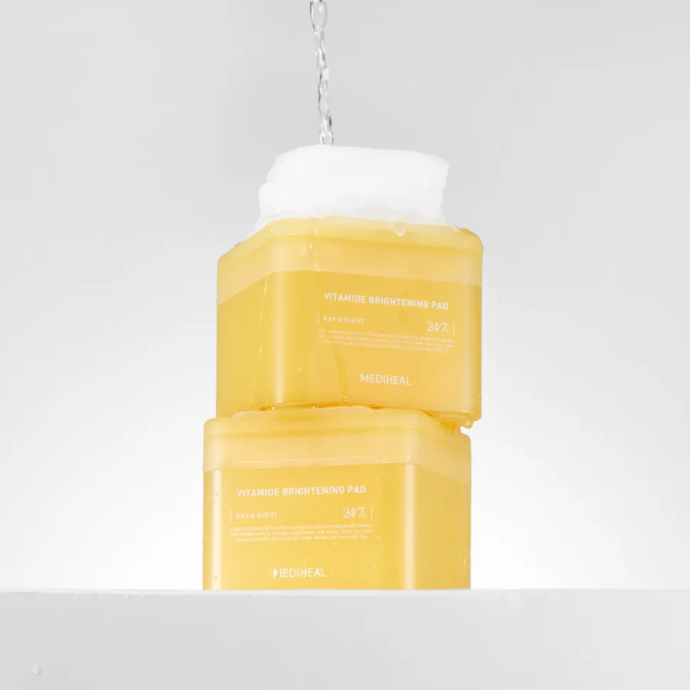 Mediheal Vitamide Brightening Pad on kirkastava ja heleyttävä kasvovesilappu (toner pad) erityisesti samean ihon ja pigmenttimuutosten hoitoon. Näillä kasvovesilapuilla saat aikaan lasimaisen kuulaan glass skin -efektin ja palautat ihollesi elinvoimaisen hehkun.