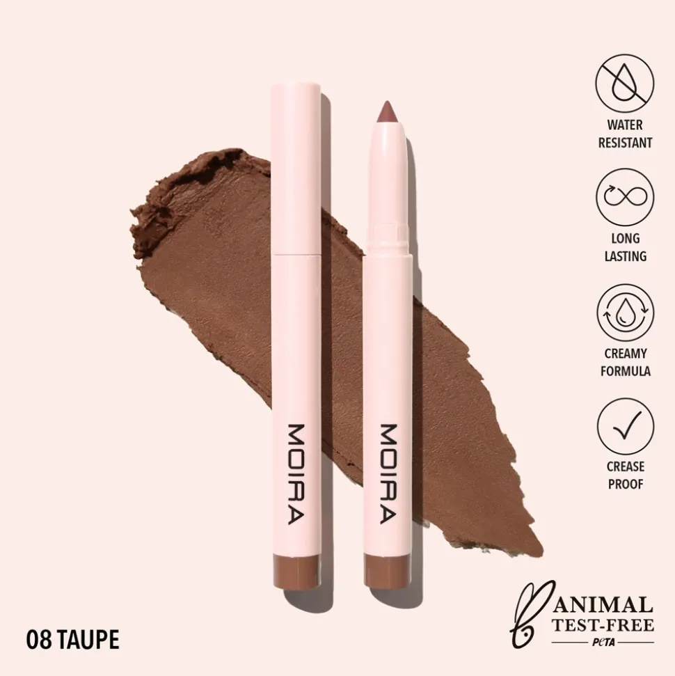 MOIRA At Glance Stick Shadow -luomivärikynä tekee silmämeikin luomisesta nopeaa ja vaivatonta. Tämä monikäyttöinen ja innovatiivinen luomivärikynä liukuu silmäluomillesi kevyesti, mahdollistaen intensiivisen ilmeen luomisen hetkessä. Sen kermainen, vedenkestävä koostumus on suunniteltu pysymään paikallaan pitkään sekä sen monipuoliset sävyt mahdollistavat loputtomat vaihtoehdot erilaisten silmämeikkien luomiseen!