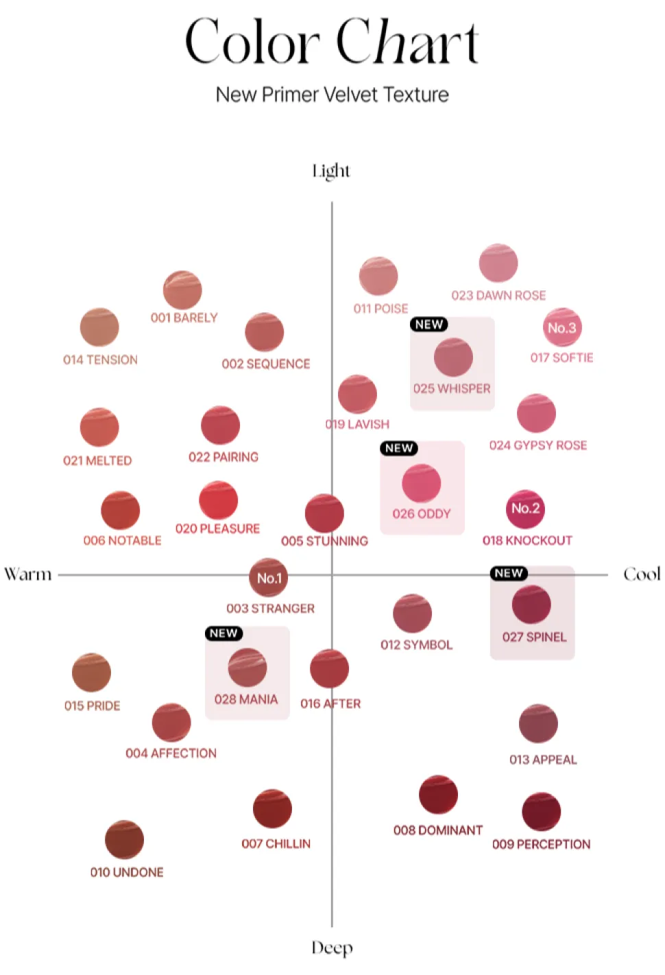 Huulisävyte asettuu huulille pitkäkestoisesti, joka estää värin leviämisen tai haalistumisen päivän aikana. Lopputulos on runsaspigmenttinen, samettisen matta ja pitkäkestoinen, pysyen kauniina ilman korjailua.
