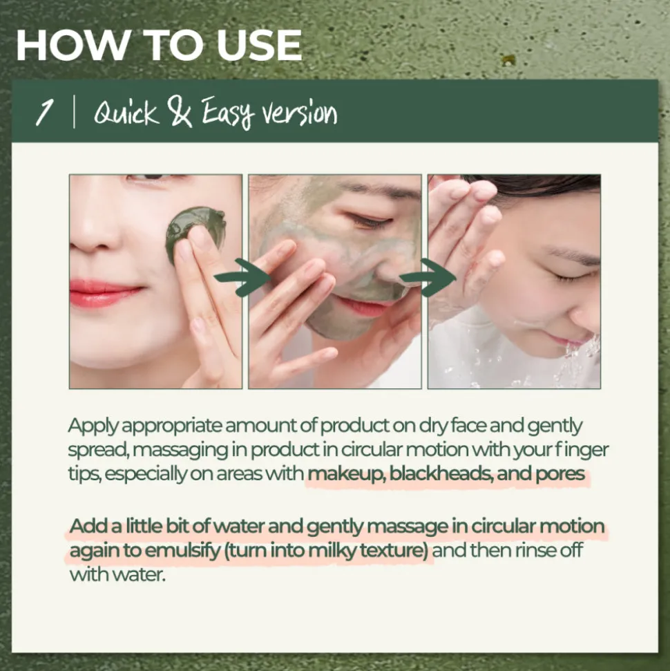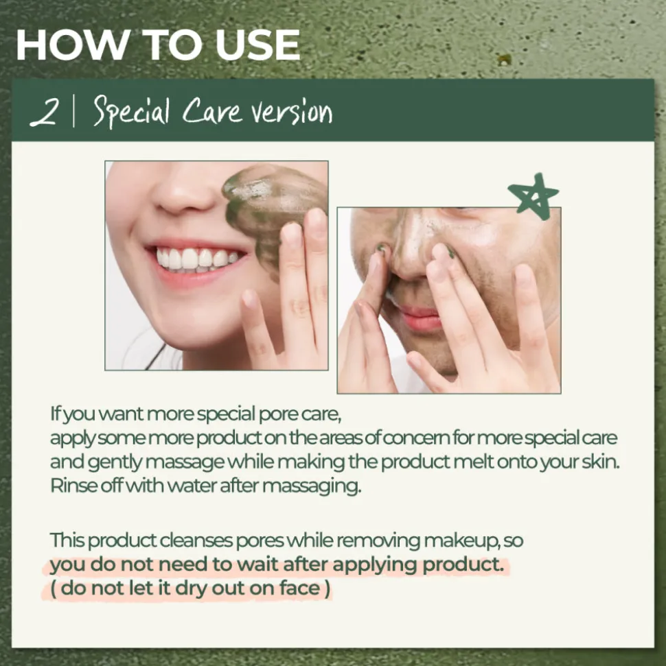 Numbuzin No.3 Pore & Makeup Cleansing Balm with Green Tea and Charcoal on monikäyttöinen puhdistusbalmi rasvoittuvalle- ja epäpuhtauksiin taipuvalle iholle – tämä puhdistusbalmi toimii myös savinaamion tapaan täsmähoitona ihon ongelma-alueille mustapäiden ja epäpuhtauksien eliminoimiseen!