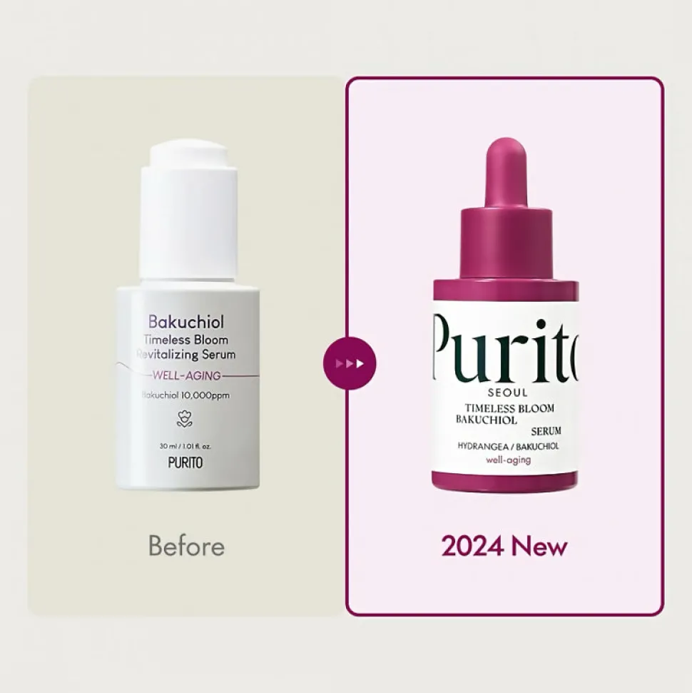 Tuoteen nimi ja pakkaus ovat uudistuneet vastikään: Purito Bakuchiol Timeless Bloom Revitalizing Serum → Purito Seoul Timeless Bloom Bakuchiol Serum ♡