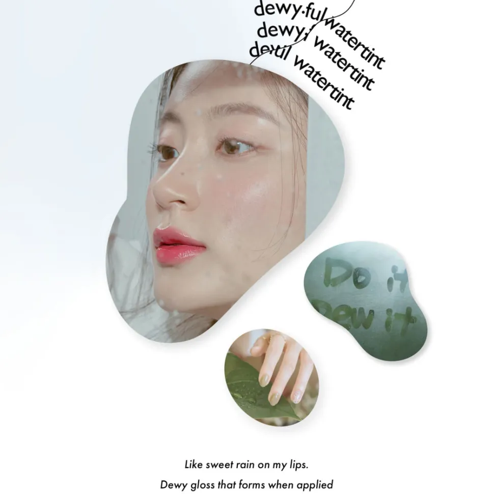 Rom&nd Dewyful Water Tint on huulisävyte (lip tint), joka luo huulille kastehelmimäisen kiiltävän ja kosteutetun pinnan. Luonnolliset MLBB -sävyt pysyvät huulilla pitkään ja niitä voi halutessaan kerrostaa, jolloin jokainen kerros lisää lopputuloksen intensiivisyyttä.
