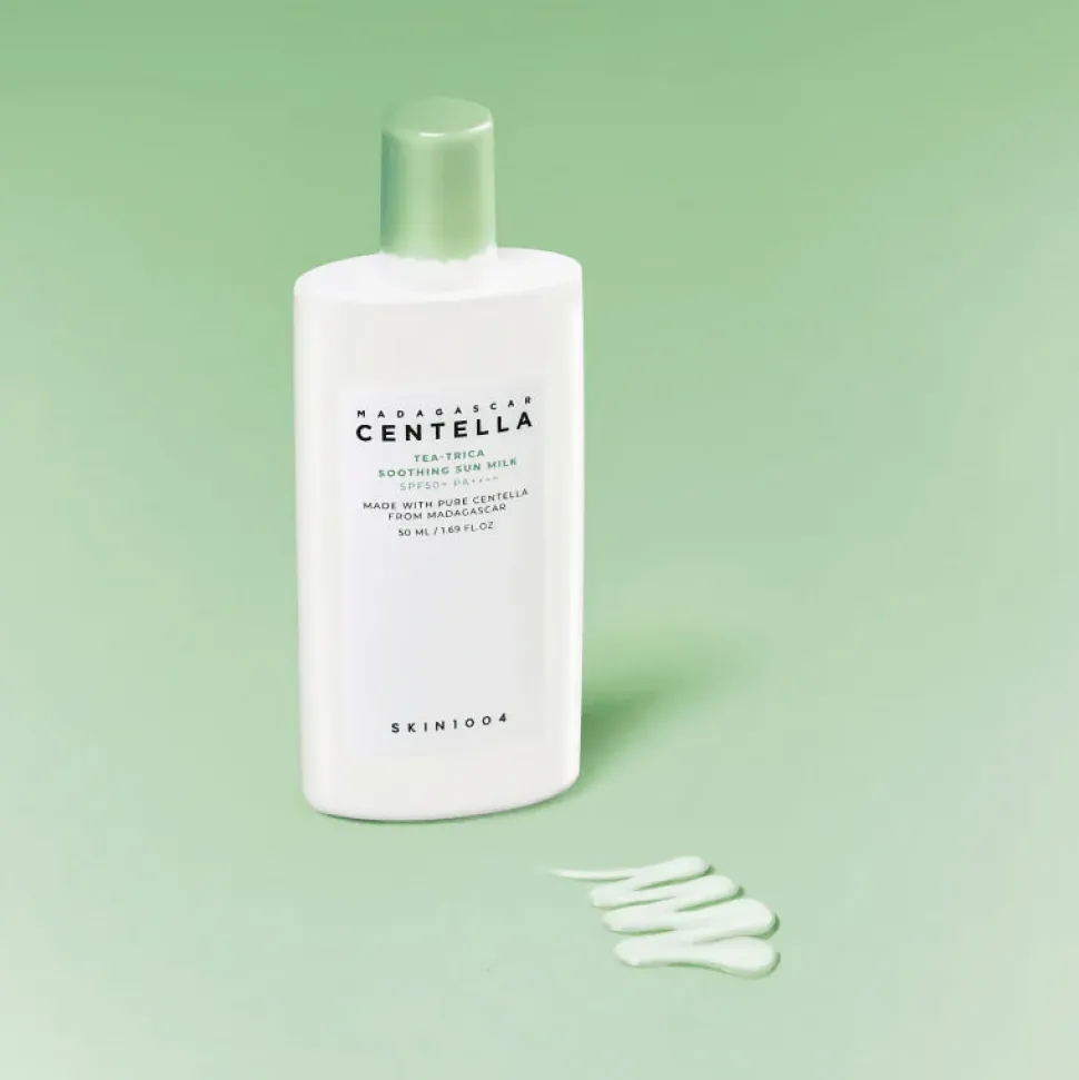 Centella Tea-Trica Soothing Sun Milk on komedogeenitön ihoa rauhoittava SPF50+ / PA++++ suojakertoimen kemiallinen aurinkovoide etenkin herkälle, rasvoittuvalle ja epäpuhtauksiin taipuvalle iholle – tämä maitomainen aurinkovoide tuntuu iholla ilmavan kevyeltä ilman tahmaista tunnetta, jättäen jälkeensä raikkaan ja tasapainoisen kosteutetun lopputuloksen ilman huolta raskaasta tai öljyisestä tunteesta!