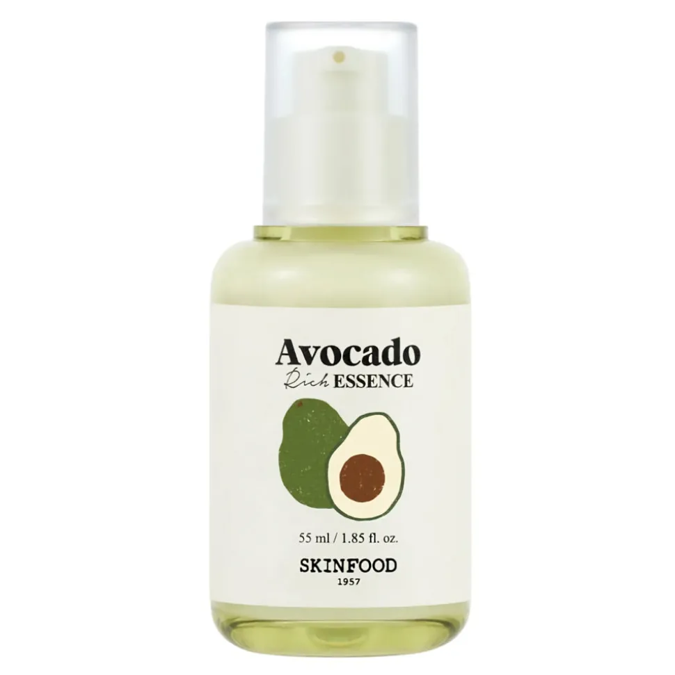 Skinfood Avocado Rich Essence on ihoa syväkosteuttava ja ravitseva, täyteläinen hoitoneste etenkin kuivalle iholle, joka kaipaa intensiivistä kosteutusta ja tervettä hehkua – tämä kermaisen paksu hoitoneste sisältää 25% kosteuttavaa avokadouutetta ja -öljyä, ravitsevaa sheavoita, sekä kosteusköyhää ihoa helliviä antioksidanttisia kasviöljyjä (jojoba, oliivi, makadamia) jotka yhdessä auttavat luomaan väsyneestä ihosta pitkäkestoisen kosteutetun, tasapainoisemman ja pehmeämmän.