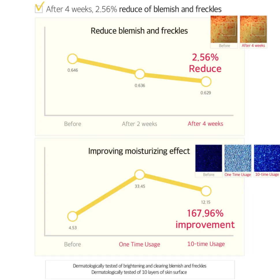 Seerumi sisältää hellävaraista – luontaisesti C-vitamiinipitoista – Yuja-sitrusuutetta (96%), niasiiniamidia (5%), lakritsinjuuriuutetta ja traneksaamihappoa, jotka yhdessä auttavat tehokkaasti häivyttämään ihon pigmenttimuutoksia, kuten aknearpia ja melasmaa.