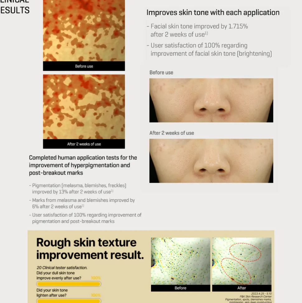 Puhdistusaine sisältää antioksidanttipitoista niasiiniamidia, yuja-sitrusuutetta (11%) ja ripauksen puhdasta C-vitamiinia, jotka yhdessä auttavat kirkastamaan ja tasoittamaan ihon tekstuuria ja yleisilmettä, ennaltaehkäisemään tulehduksien syntymistä, sekä häiventämään ihon pieniä pigmenttimuutoksia, kuten aknearpia ja auringon aiheuttamia tummentumia.