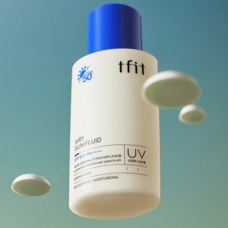 TFIT Airy Sun Fluid on ilmavan kevyt SPF50+ PA++++ suojakertoimen kemiallinen aurinkovoide.
