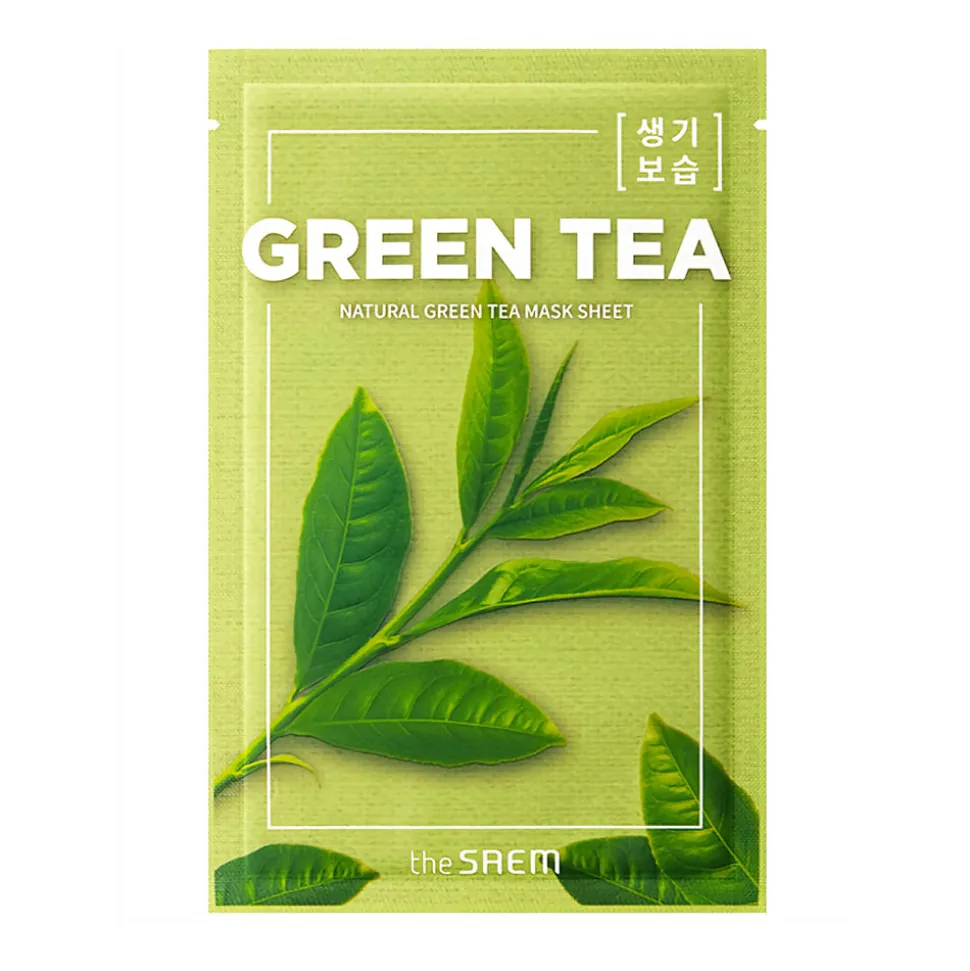 The Saem Natural Green Tea Mask Sheet on rauhoittava ja kosteuttava kangasnaamio kaikille ihotyypeille, etenkin sekaiholle. Sisältää runsaasti antioksidanttipitoista vihreä tee-uutetta lievittämään punoitusta-, tasapainottamaan stressaantutta ihoa- ja kontolloimaan liiallista talineritystä.