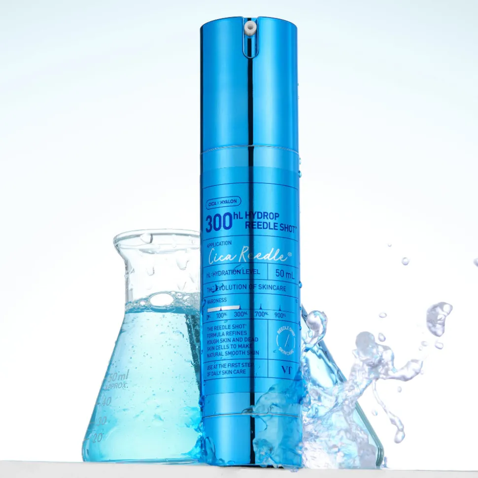 VT Cosmetics Hydrop Reedle Shot 300hL on syväkosteuttava hoitoneste, joka edistää aktiivisten ainesosien imeytymistä ihoon parantaen ihon tekstuuria, elastisuutta ja kuulautta mikroneulauksen tavoin – ilman neuloja!