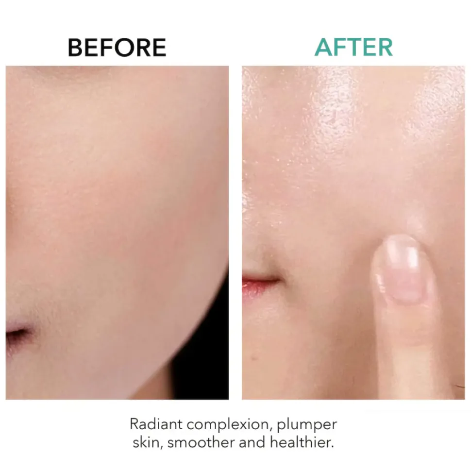 Yhdistettynä ihon suojamuuria vahvistavien keramidien ja heleyttävän glukonihapon kanssa, tämä innovatiivinen hoitoneste auttaa luomaan kasvojen yleisilmeestä elinvoimaisemman ja lasimaisen hehkuvan ♡