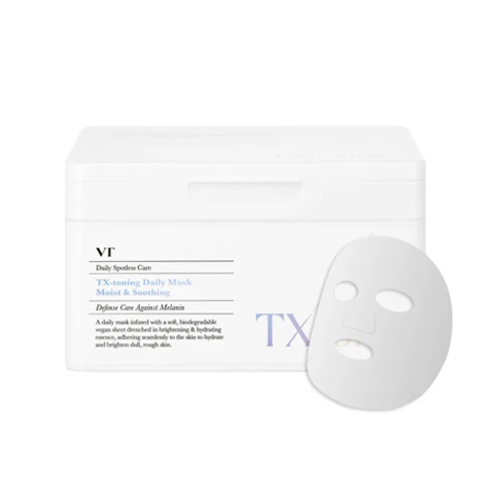 VT Cosmetics TX-Toning Daily Mask on päivittäiseen käyttöön suunniteltu kangasnaamio kaikille ihotyypeille. Hellävarainen ja hajusteeton naamio sopii myös herkälle iholle, ja se auttaa tehokkaasti kirkastamaan ihoa, haalentamaan pigmenttimuutoksia kuten aknearpia, ja jättää ihon pehmeäksi ja kosteutetuksi.